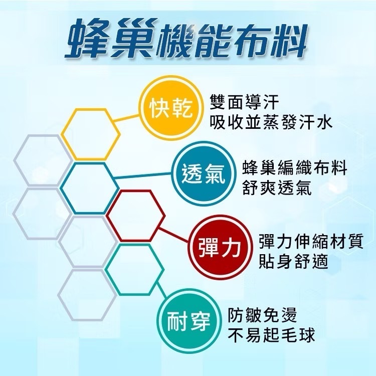 雙面吸濕排汗,全新升級超透氣蜂巢織法