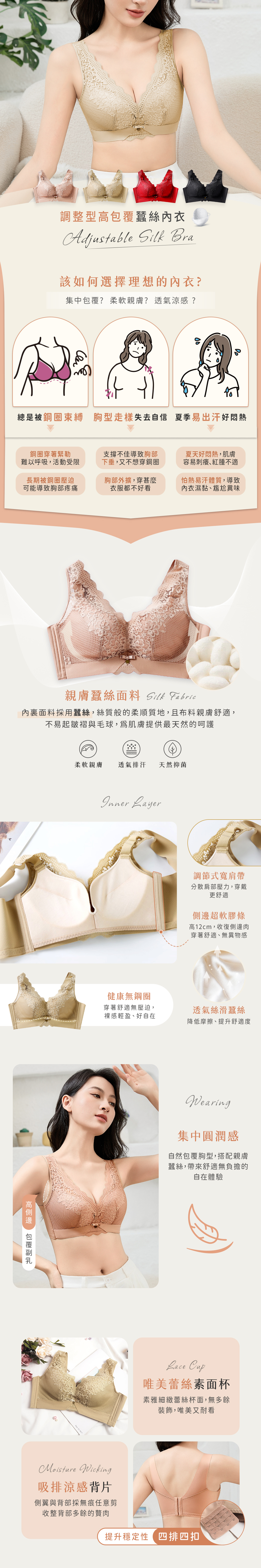 側邊加高包覆副乳,無壓迫的無鋼圈也能穿出完美胸型