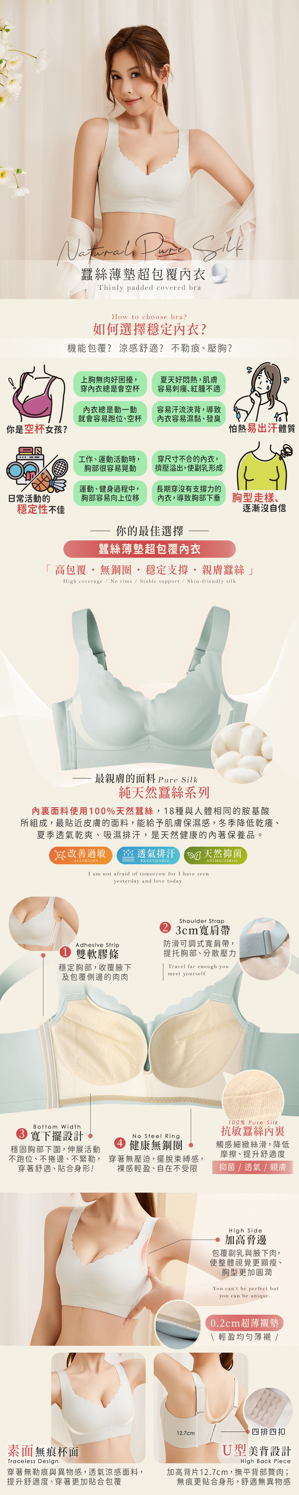 0.2 cm超薄蠶絲襯墊,無痕吸濕透氣材質