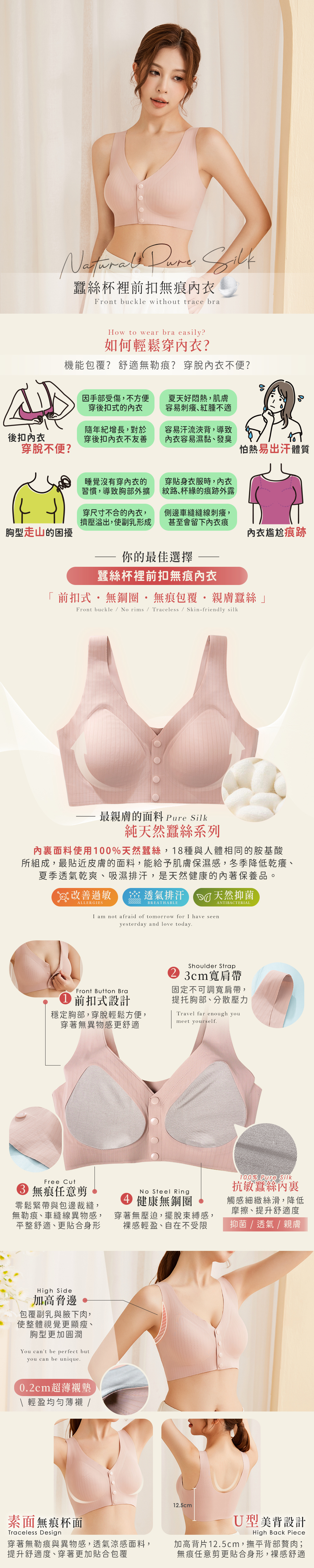 胸前6A純蠶絲面料,高親膚性、透氣性,提高舒適性,遠離過敏汗疹