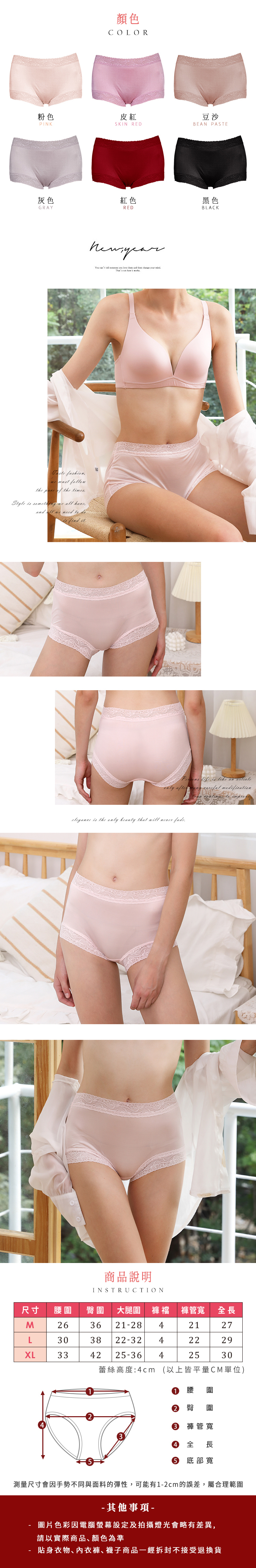 42針雙面絲光;中腰蕾絲平口款