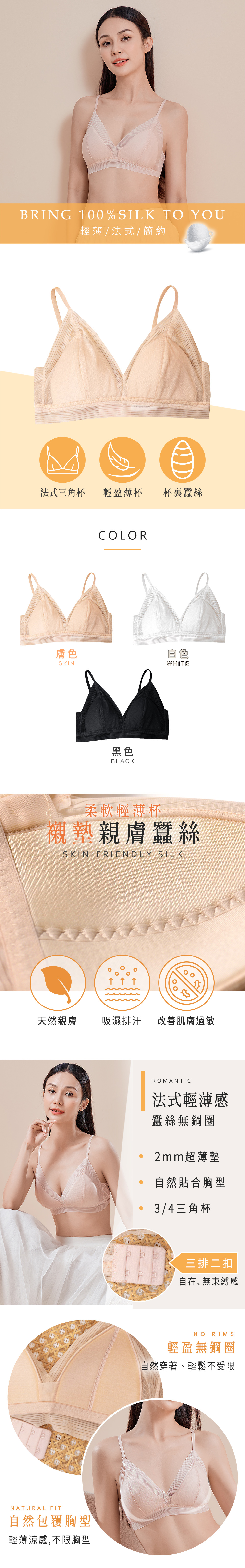 蠶絲超薄襯墊,任何胸型都貼合