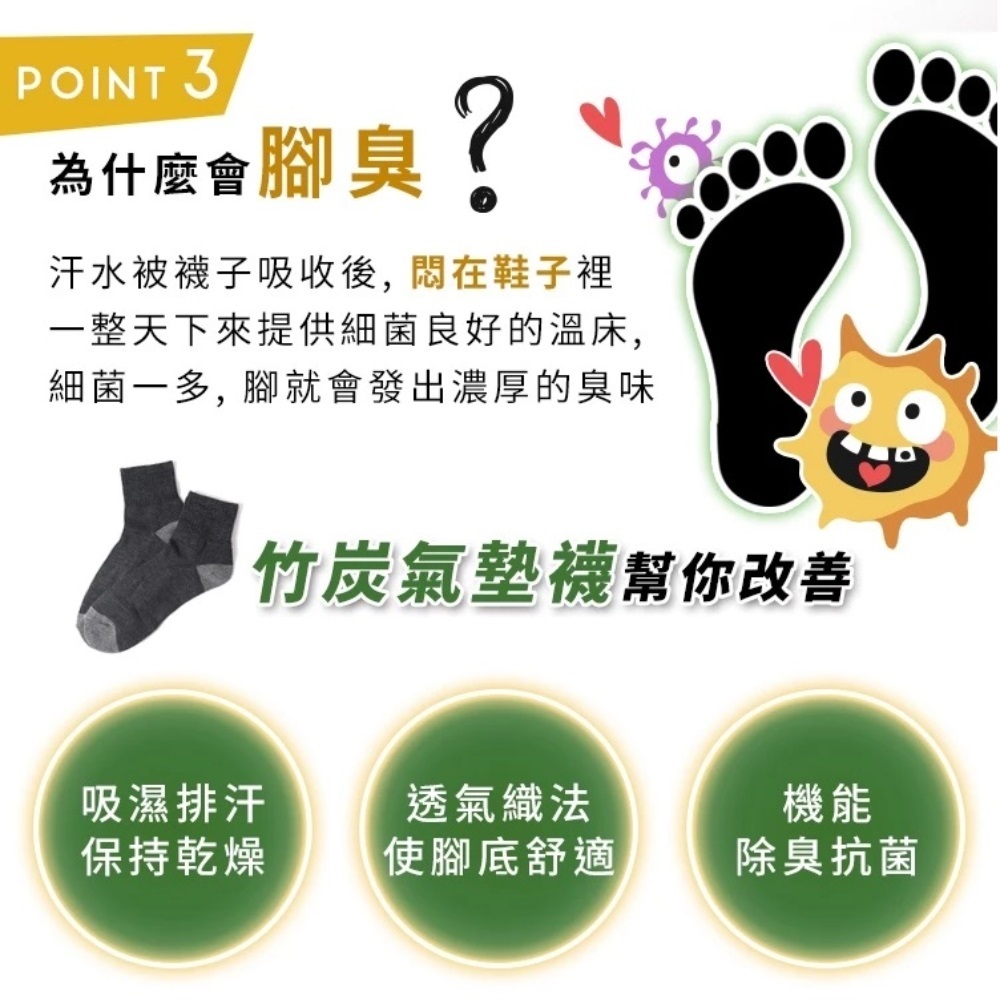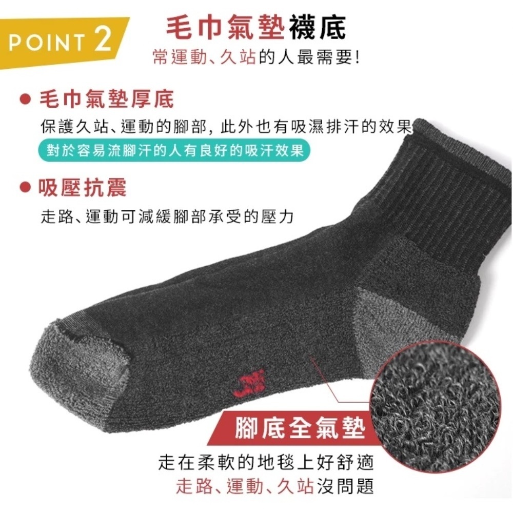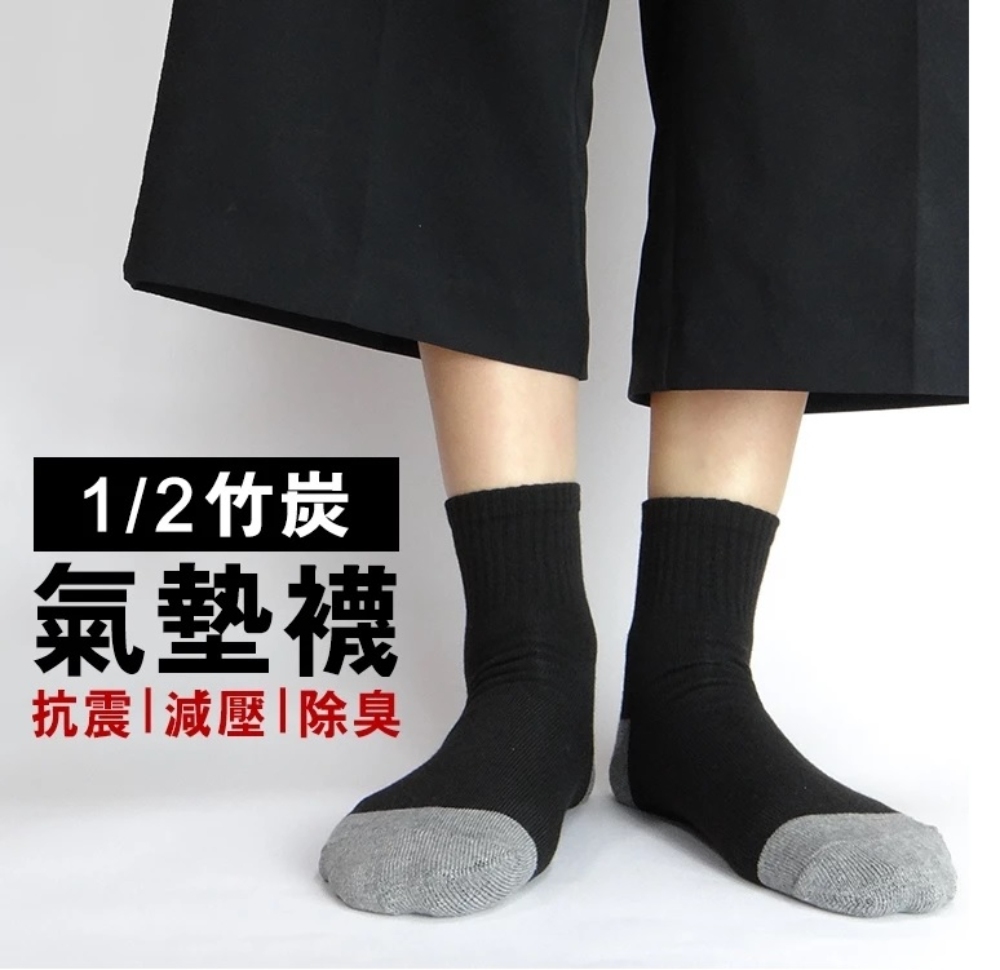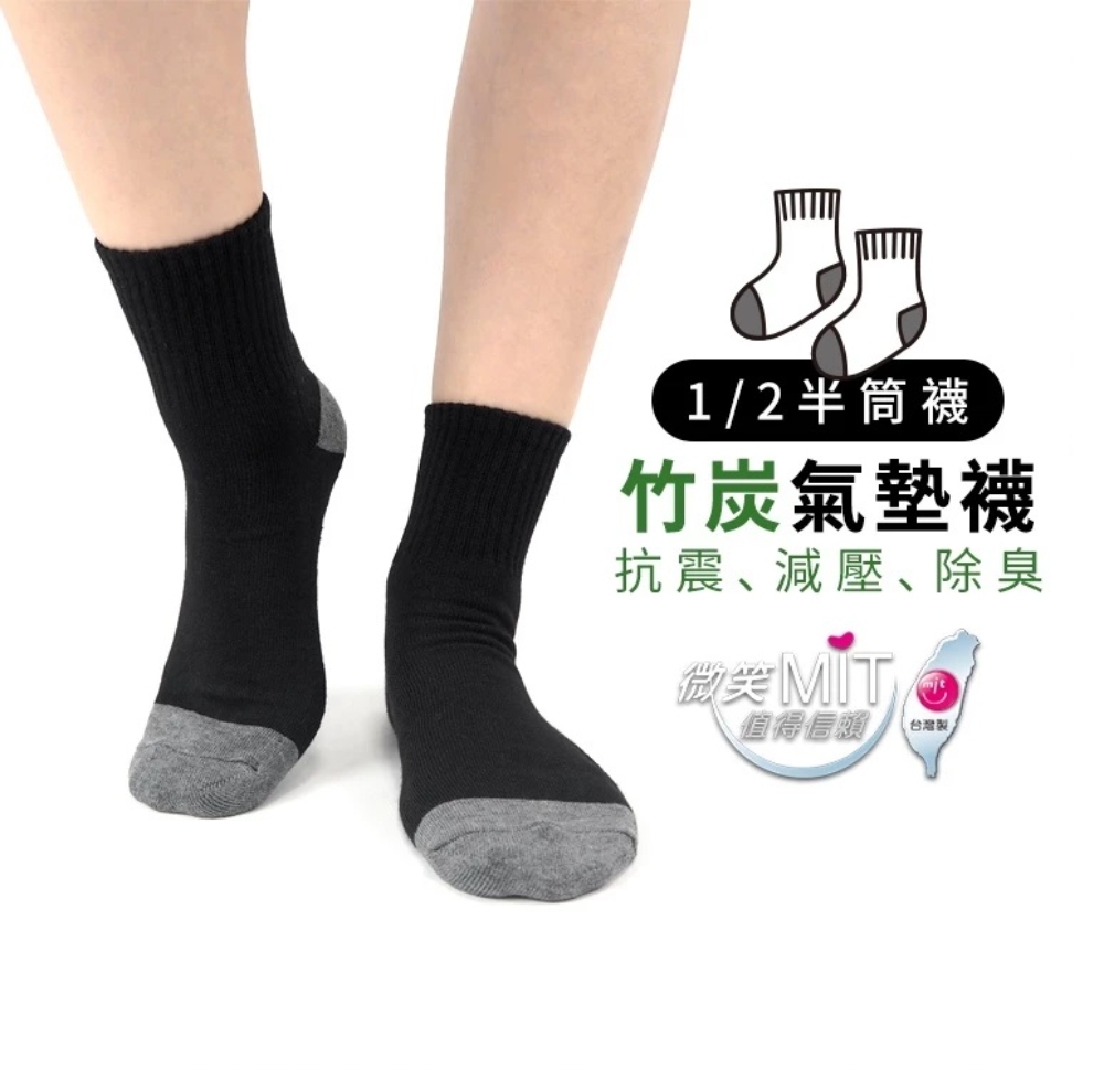(6雙組)毛巾氣墊底|厚底炭氣墊1/2運動襪【CT8312】