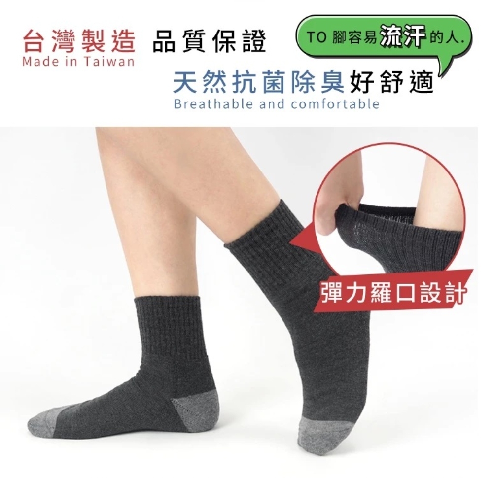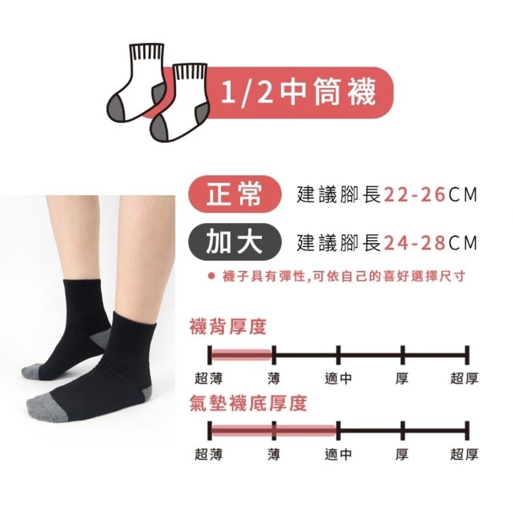 台灣製純棉氣墊1/2襪