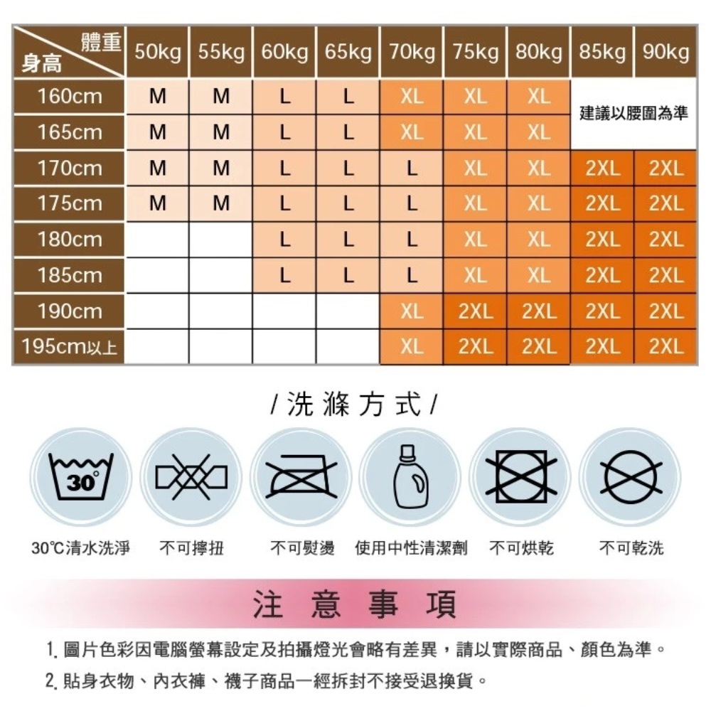 中國製;尺寸M-XXL