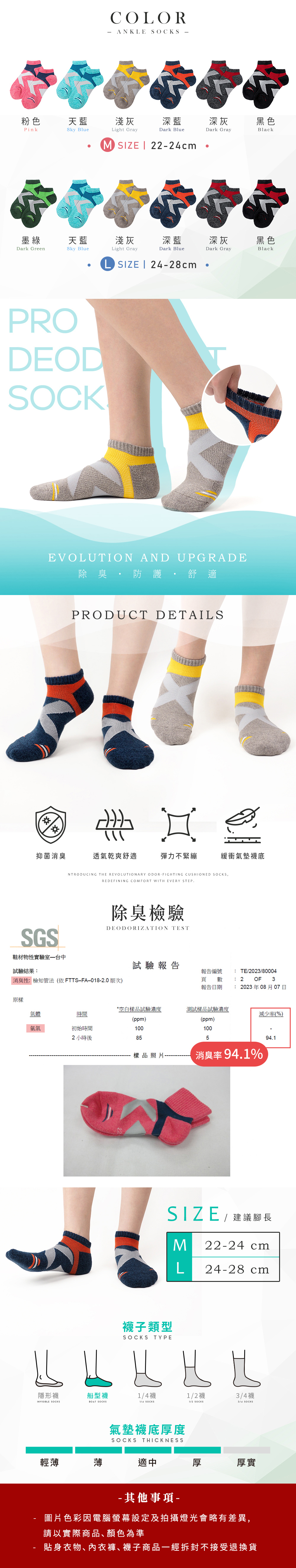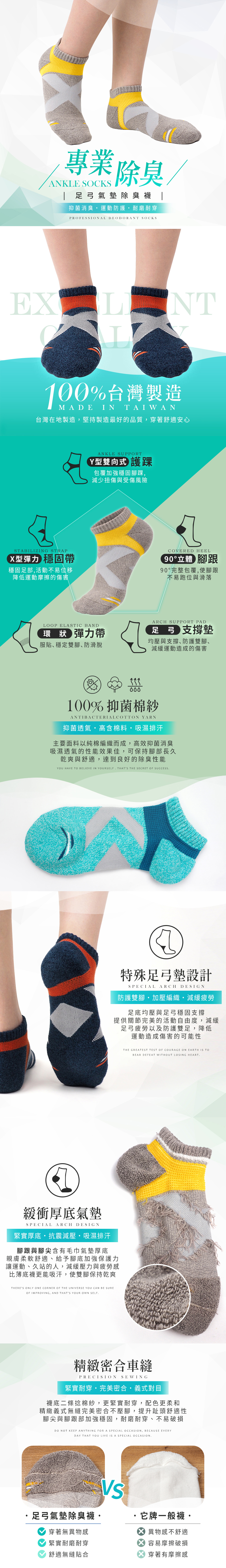 SGS認證除臭|船型加厚氣墊足弓襪【F111】