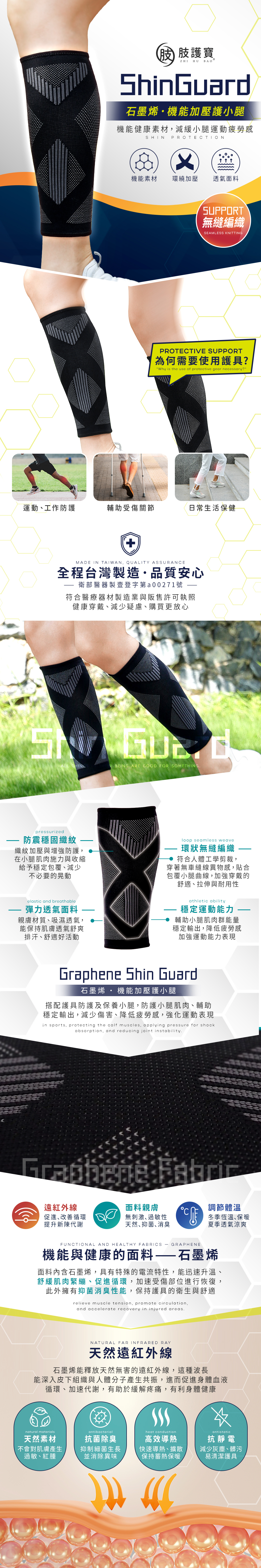 加壓防護支撐小腿肌肉,減少晃動,降低疲勞與傷害,加強運動表現
