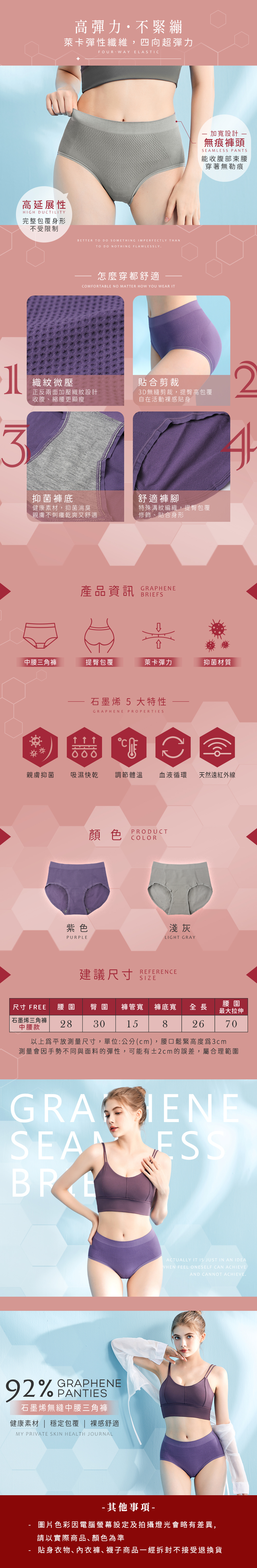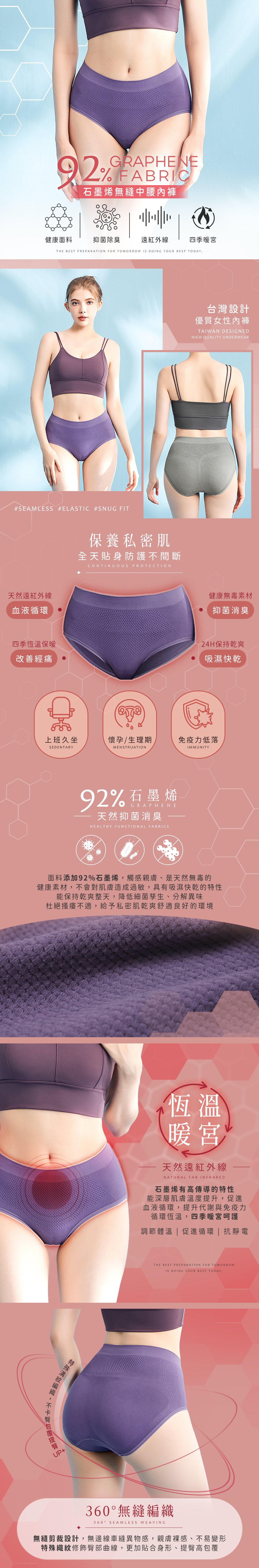 添加石墨烯舒緩肌肉緊繃,改善血液循環,天然無毒、無刺激性的面料,不會對肌膚造成過敏,抗菌消臭、吸濕快乾,保持乾爽一整天,改善私密處衛生健康。