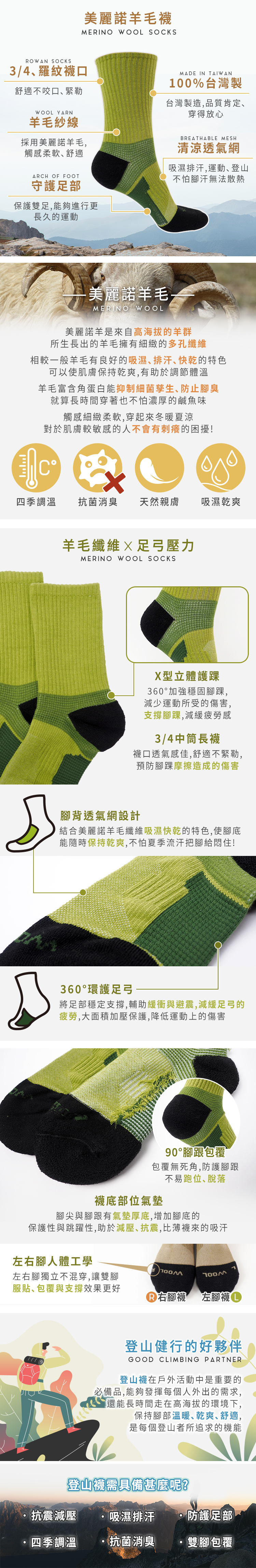 美麗諾 | 3/4足弓環護羊毛襪【M200】